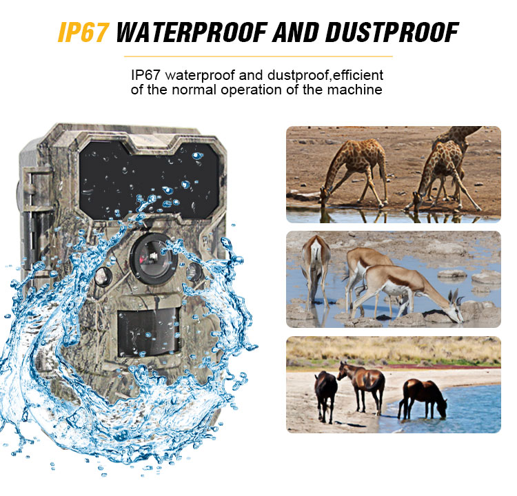 Excellent waterproof IP67 and dust-proof ensure game camera durability in raining condition.